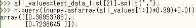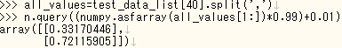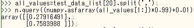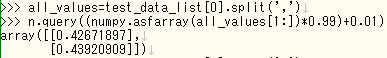左図の✕を判定させると、 丸が0.2791・・・ ✕が0.7583・・・ となり正しく✕と判定できました。 |