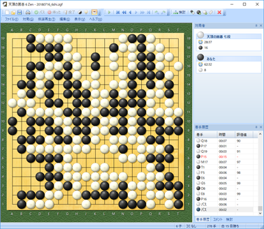 最終局面 黒石を取られて大損しましたが、 左上白を取ればまだ黒が少し良いのでは と思って打ち続けましたが、 ヨセでも失敗して黒15目負けでした。 |