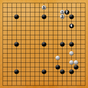 白は右下は手を抜いて、白1とかかり、 白5とスベってきました。 |