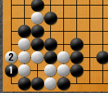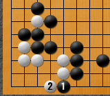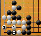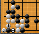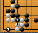 白1には黒2と打つしかなく、白3と打たれます。 |