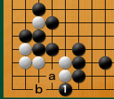黒1ハネに白a、bは前回見たように死になので・・・ |