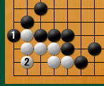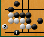 黒1ときたら、これもハコ形+1の形なので、 白2でイキです。 |