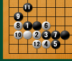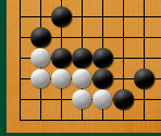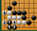 黒1、3、5には白2、4、6と受けておいて生きています。 |