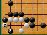 白1に黒2と打つのも知らないとなかなかできない手。 白3に対して黒はどう打ちますか? |