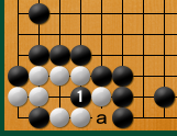 黒1が決め手の一手で、 白は取られてしまうので、aにツグことができません。 |