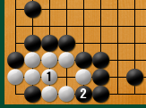 なので白1とヌクしかなく、 黒2と眼をツブせば白死にとなります。 |