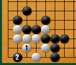 白1のヌキに黒2が決め手となり、白死にです。 |