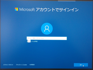 アカウントの設定 ローカルアカウントでログインするようにしました。