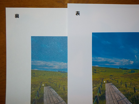 下の写真は右が表に印刷したもので、左が裏に印刷したものです。