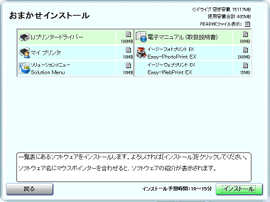 おまかせインストールでの画面