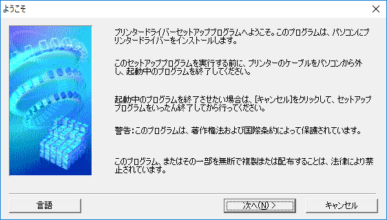 この画面が出たら、パソコンとプリンターをUSBケーブルでつなぎ、プリンターの電源を入れます。