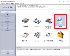 | 2 | メニュー画面 | Easy-PhotoPrint EXの「名刺」をクリックします。 | ![]() |