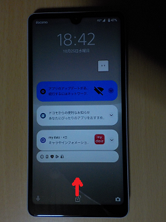 赤い矢印で示すようになぞります。(スワイプします。)